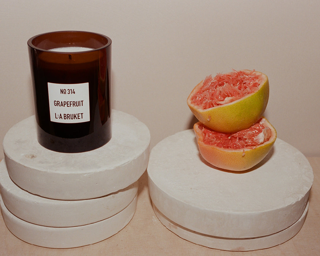 Here, we encapsulate the immediate experience of opening a grapefruit in one's hands. Its juice and peel mixing together in a rush of intense vitality. The sparkling essential oil practically spilling out of its flesh, the droplets drifting in the air around you. Creating an energising environment in any room.
