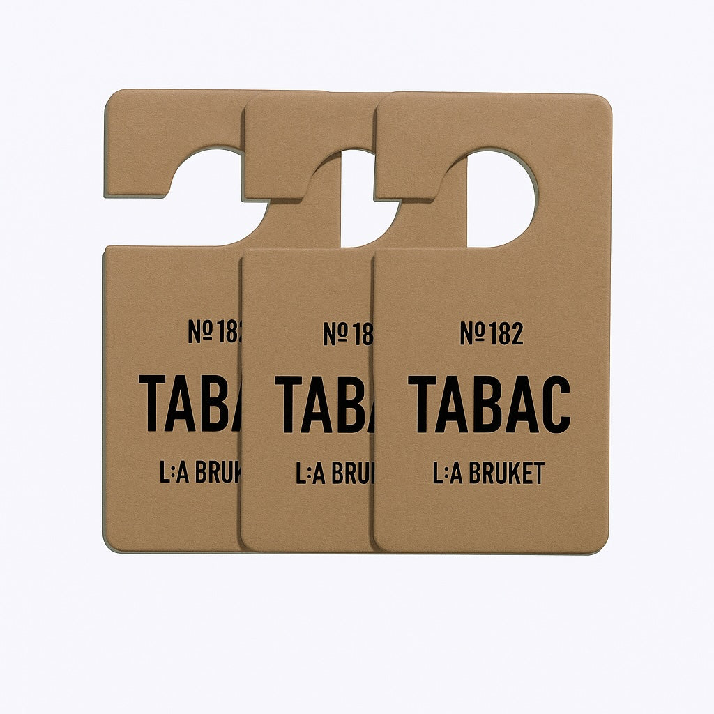 Scented tag made of paper and fragranced oil with a with a masculine and oriental scent of cedar and musk to bring a unique atmosphere to the home. Hang on a door handle, in a closet, or a towel rack of the bathroom for instance.