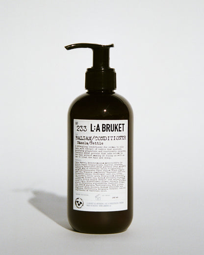 Rich in fatty acids, vitamins and minerals, it brings moisturizing and rejuvenating properties to the hair, leaving hair looking overall bouncier and shinier. It also heals hair ends, preventing them from dehydration and splitting. The Nettle leaf extract brings purifying properties and strengthens the hair fibre, whilst also regulating the sebum production of the scalp, effectively counteracting oiliness.