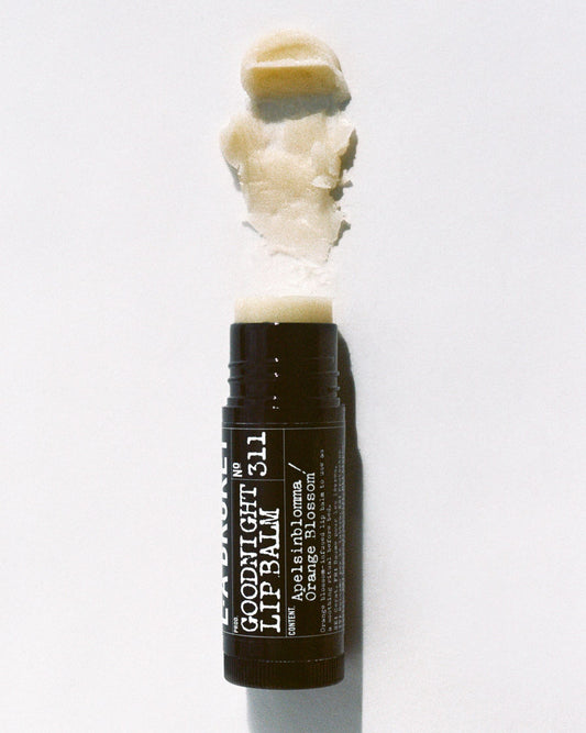 Our Orange Blossom-infused lip balm, a soothing ritual before bed, comforting body and mind.